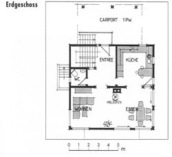 Sichtbalken mit Schalung als Decke im Wohngeschoss.